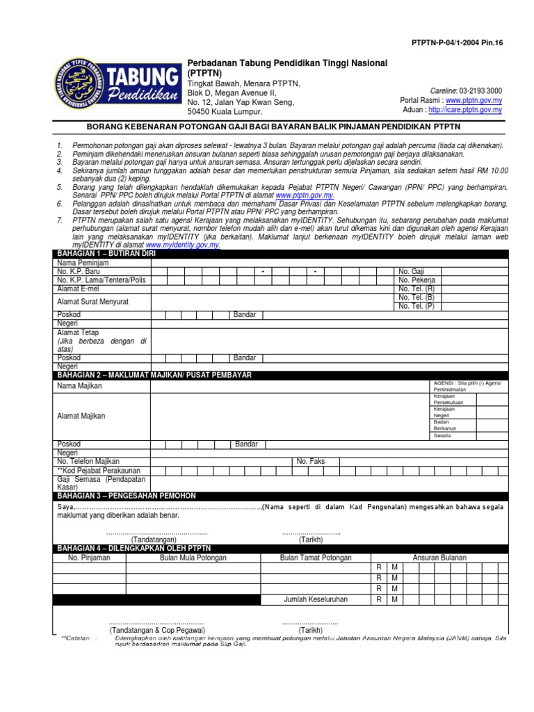 Borang lampiran b borang pengesahan pendapatan kwapm. Tabungan haji tidak diberikan bunga, potongan biaya administrasi bank, maupun biaya pembukaan rekening dari bank, kecuali biaya penutupan rekening atas permintaan penabung atau penabung menyatakan dirinya batal naik haji (kalau ada). Salah satunya adalah bpjs kesehatan. Potongan minimum yang boleh dibuat adalah serendah rm10. Skim potongan tabung haji merupakan satu kemudahan yang tabung haji sediakan untuk pendeposit membuat simpanan bulanan melalui potongan gaji.