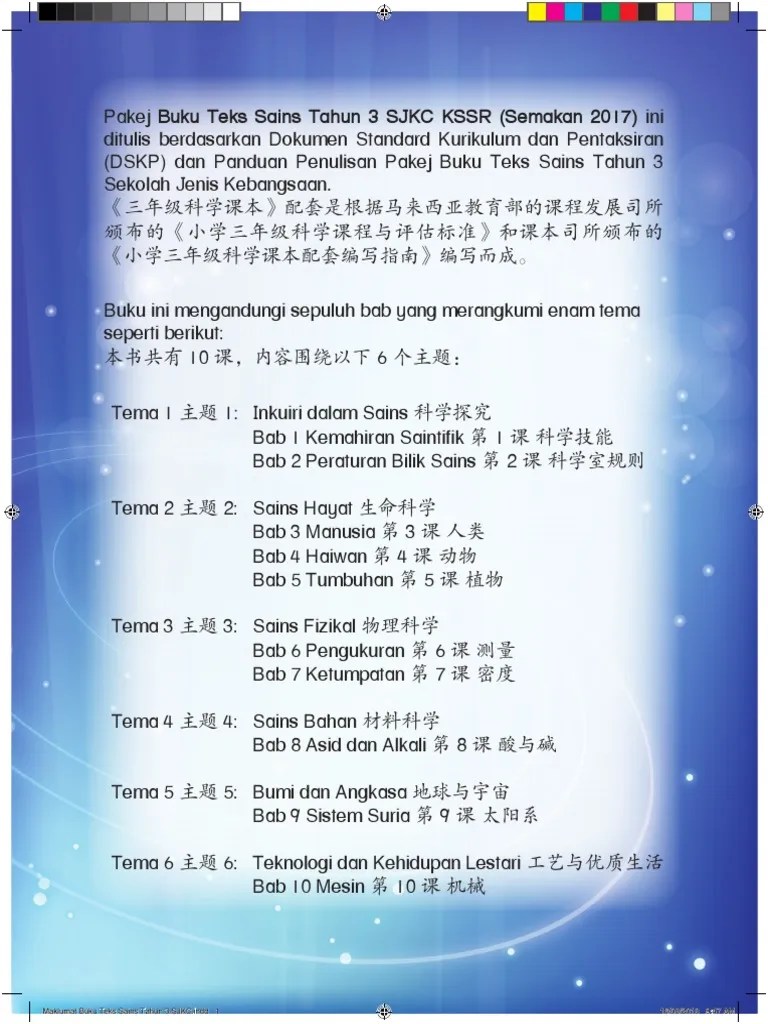 Dskp Kssr Sains Tahun 3 Sjkt Semakan 2017 Gurubesar My from gurubesar.my Soalan peperiksaan pertengahan tahun sejarah tingkatan 3. Pemerkasaan sains pt3 2019 jpwpp. Muat turun dskp pendidikan seni visual tahun 1 yang boleh di cetak dengan cepat. Editable fail dalam microsoft word. Dskp tahun 6 ( terbaru ). Pdf dskp kssr sains sjkc tahun 6 ( pdf, 6.75 mb ) (12601 downloads) popular. You may use this as your reference. Pelaksanaan kssr (semakan 2017) tahun 3 adalah pada tahun 2019.