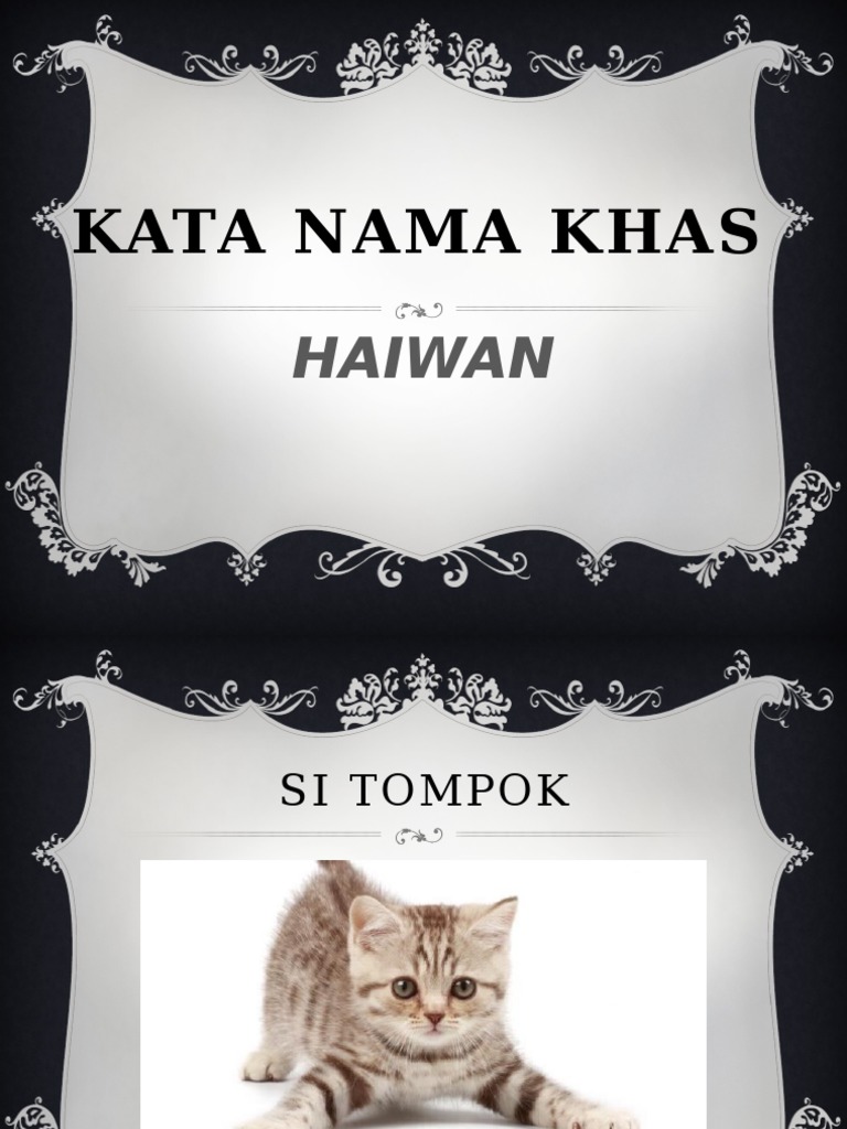 Kata Nama Khas Haiwan / Kata nama ialah kata yang menamakan sesuatu, biasanya melibatkan orang, haiwan, benda tempat dan konsep.